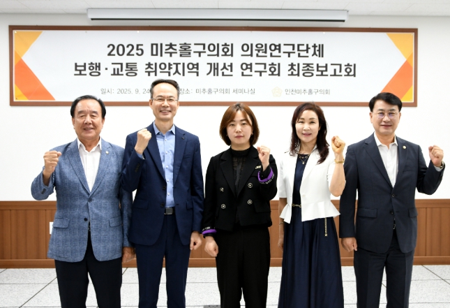 [세계로컬타임즈] 인천광역시 미추홀구의회 의원연구단체 '보행·교통 취약지역 개선 연구회'(대표의원 박수연, 연구의원 장규철·배상록·김태계)가 2025년 9월 24일 미추홀구의회 세미나실에서 연구용역 최종보고회를 개최하고 성공적으로 마무리했다.