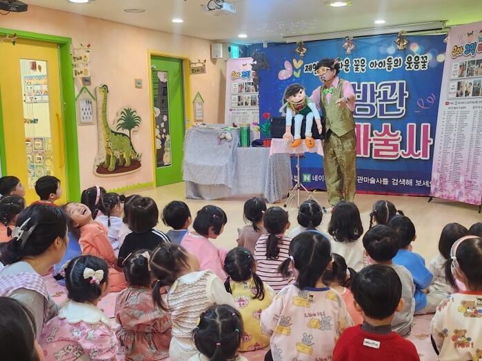 마술과 스토리텔링을 결합한 공연은 ‘협력·배려·나눔’의 인성 가치를 유아의 눈높이에 맞춰 구성해 43년 경력의 전문 마술사가 진행하는 교육형 공연으로 펼쳐졌다.