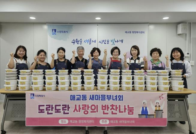 이미정 매교동 새마을부녀회장은 “이번 반찬나눔 행사를 통해 저소득층 가정에 건강한 식단을 제공하게 되어 보람차다.”며, “앞으로도 새마을부녀회에서 관내 어려운 이웃들을 위한 지속적인 관심을 가지고 나눔활동을 전개하도록 노력하겠다.”라고 전했다.