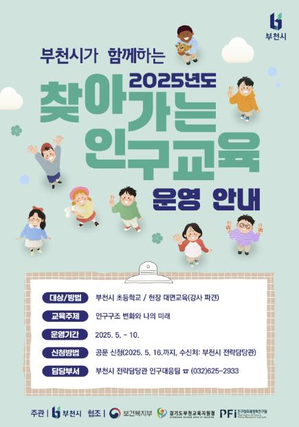 부천시 관계자는 “이번 인구교육은 아동이 인구변화 현상을 올바르게 이해하고, 사회구성원으로서 건강한 가족 가치관을 형성하는 데 취지가 있다”며, “교육을 통해 아동들이 인구변화 현상에 대한 관심을 갖는 계기가 되길 바란다”고 밝혔다.