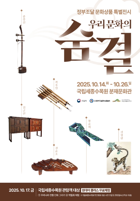 10월 17일에는 우리 전통문화를 직접 체험해 볼 수 있는 ‘원데이클래스’도 함께 운영한다. 국립세종수목원 관람객 총 200명을 대상으로 민화그리기, 혁필화 체험 등이 무료로 진행된다.