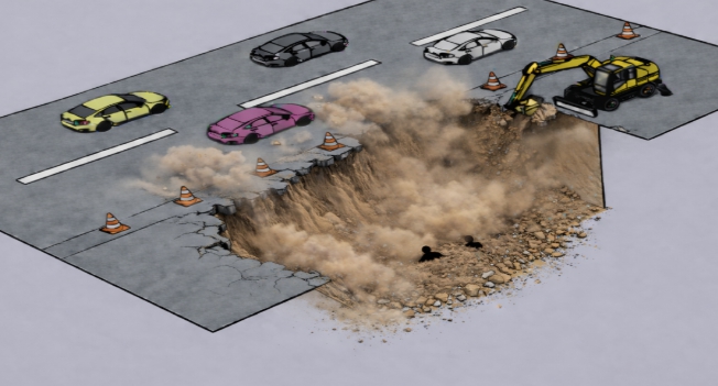 사고 당일 현장에서 편도 3차선 도로 중 1개 차로를 4미터 깊이로 굴착하여 하수관로를 설치하는 공사를 진행하던 중, 굴착 사면부가 무너지면서 노동자 2명이 토사에 매몰되는 사고(사망1, 부상1)가 발생했다.