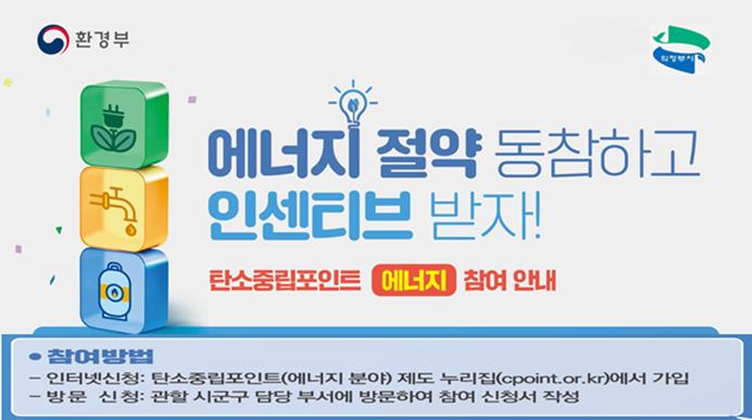 탄소중립포인트제는 시민이 일상 속에서 온실가스 감축을 실천할 수 있도록 전기‧상수도‧도시가스 등 에너지 사용량을 줄인 실적에 따라 보상하는 제도다. 에너지 분야(일반 가정용)는 최대 5만 원까지 현금 또는 그린카드 포인트로 지급된다.