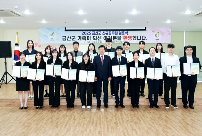 박범인 군수는 “공직에 입문한다는 것은 군민의 삶을 책임지고 지역의 미래를 함께 만들어 간다는 뜻깊은 일”이라며 “오늘 이 자리를 통해 금산군의 새로운 가족이 된 것을 진심으로 환영한다”고 말했다.