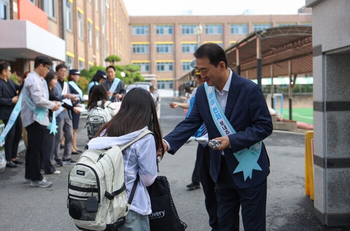 이날 캠페인에는 50여 명이 참여해 “일단 멈춤, 아이 먼저 보내주세요”라는 문구가 담긴 현수막과 피켓을 들고 등굣길에 나선 학생들과 운전자들에게 교통안전의 중요성을 알렸다.