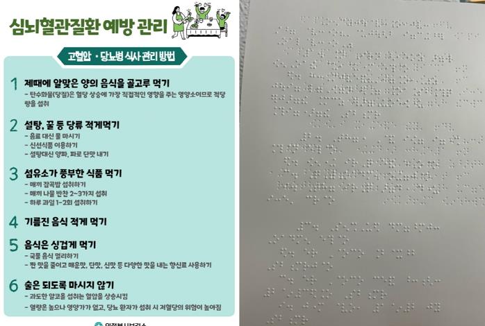 시 보건소는 총 1천 부를 제작해 시각장애인복지관 등 장애인 관련 복지기관에 우선 배포했으며, 향후 심뇌혈관질환 예방관리사업 교육에도 적극 활용할 예정이다.