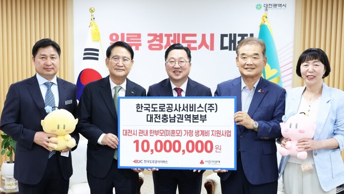 이날 기탁식에는 이장우 대전시장과 유재욱 사회복지공동모금회장, 오병삼 한국도로공사서비스 대표이사, 강주환 대전충남권역본부장이 참석했다. 기탁된 성금은 사회복지공동모금회를 통해 대전시 내 취약계층의 지원을 위해 사용될 예정이다.