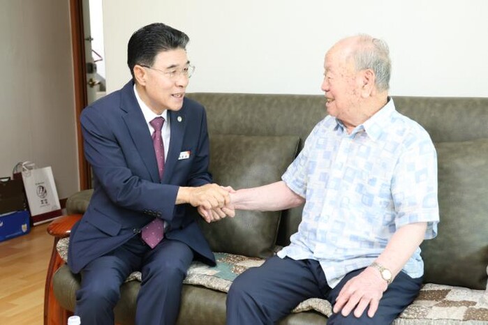 세계로컬타임즈 - 이응우 계룡시장, 6·25 참전용사 가정방문 위문