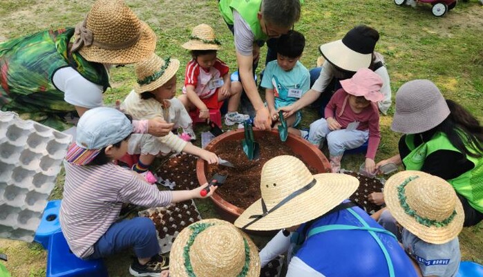 초화류 생태 프로그램은 ▴농장구경 및 꽃과 열매 채취하기 ▴색깔 친구 이야기 및 ‘색깔을 훔치는 마녀’ 그림책 읽기 ▴나만의 재활용 컵 꽃화분 만들기 ▴꽃 카나페 만들기로 진행됐으며 관내 3개 어린이집 62명의 어린이가 총 5회의 프로그램을 체험했다.