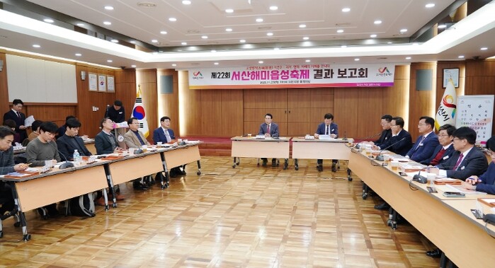 이번 보고회에는 이완섭 서산시장을 비롯하여 부시장, 축제 관계 부서, 서산문화재단 및 대행사 등이 참석하여 올해 축제 운영 성과와 향후 발전 방향을 함께 논의했다.