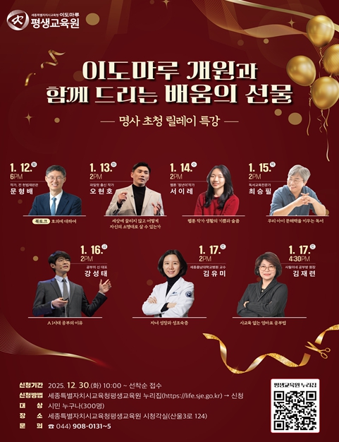 신청은 2025년 12월 30일 오전 10시부터 평생교육원 누리집에서 할 수 있으며, 선착순 모집한다.