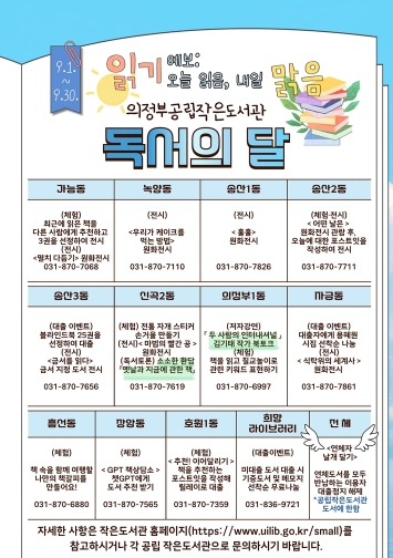 [세계로컬타임즈] 의정부시는 독서의 달을 맞아 9월 1일부터 30일까지 다양한 독서 체험활동과 이벤트를 운영한다.