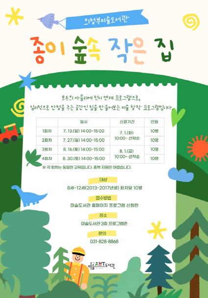 프로그램은 7월부터 시작되며, 신청은 7월 1일 오전 10시부터 의정부미술도서관 누리집에서 선착순으로 접수한다. 운영 일정과 신청 방법은 누리집을 통해 확인 가능하다.