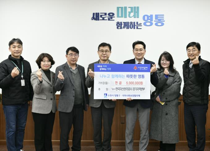 장수석 영통구청장은 “지역사회를 위한 지속적인 관심과 후원에 감사드린다. 기부금은 꼭 필요한 이웃들에게 잘 전달될 수 있도록 최선을 다하겠다”고 밝혔다.