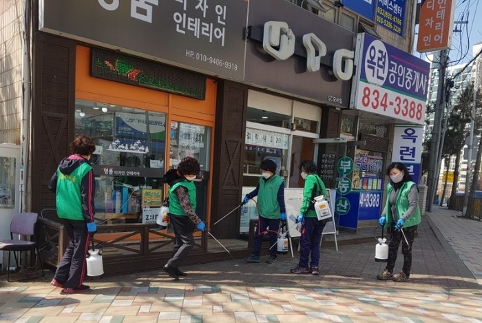 이는 최근 경기침체의 장기화로 어려움을 겪고 있는 골목상권을 보호하고 주민들의 불안감을 해소하기 위해 각 동 부녀회원들이 자원해 추진한 방역 활동이다.