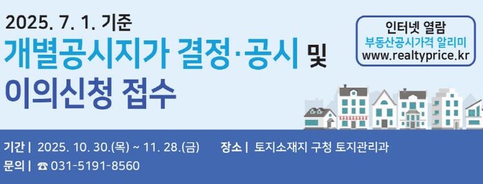 결정·공시되는 개별공시지가는 토지소재지 구청 토지관리과 및 인터넷 부동산공시가격알리미에서 확인할 수 있으며, 개별공시지가에 이의가 있는 토지소유자나 이해관계인은 이의신청서를 토지소재지 구청 토지관리과에 방문 또는 우편 제출하거나 인터넷을 통하여 신청할 수 있다.