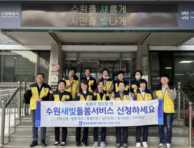 ‘수원새빛돌봄(누구나)’ 서비스는 도움이 필요하지만 제도권 밖에 있어 지원받지 못하는 위기 가구에게 생계, 의료, 주거, 돌봄 등 맞춤형 복지서비스를 제공하는 수원시의 통합복지 지원 체계이다.