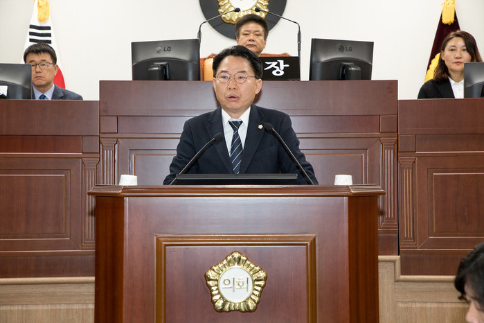 | ▲ 김기조 의원이 '대구시 북구 일반음식점 입식테이블 문화 조성에 관한 조례안'을 발의하고 있다. (사진=대구북구의회 제공) |
