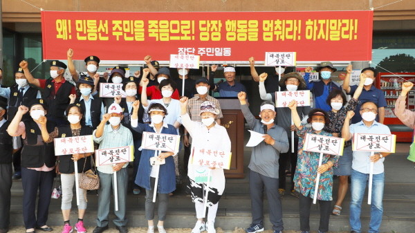 19일 오전 장단지역 이장단협의회를 비롯한 각 사회단체와 주민 등은 통일촌직판장에 집결해 "접경지역 주민의 생명과 재산을 위협하는 대북 전단 살포를 즉각 중단하라“고 촉구했다.