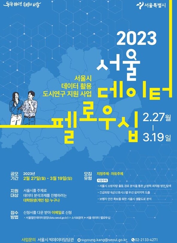[세계로컬타임즈 이효진 기자] 서울시는 2023년 ‘서울 데이터 펠로우십’(이하 ‘펠로우십’) 공모를 진행 중이다.