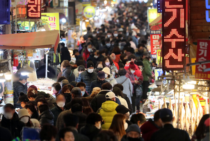 | ▲ 설을 2주일 앞둔 8일 제수용품 등을 구입하러 나온 시민들로 북적이고 있다. (사진=뉴시스) |