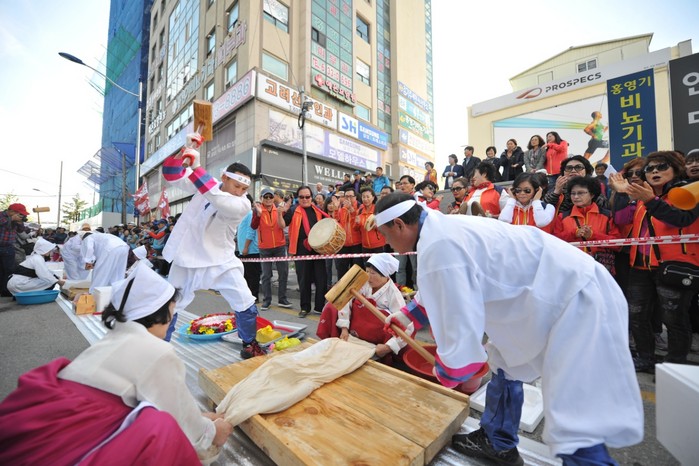 | ▲ 제52회 설악문화제를 맞아 지난 13일 전통 떡메치기 대회를 열고 있다.<사진제공=속초시청> |