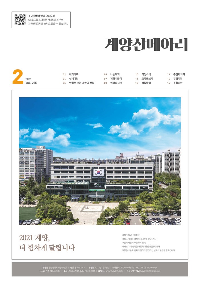 계양구는 이달에 발행하는 3월 호 구정소식지부터 오디오 서비스를 실시한다. 최근 출판계의 흐름으로 자리 잡아가는 오디오 서비스를 실시해 듣는 즐거움을 더하고 노안, 시력저하 등으로 지면‧모바일 소식지 구독에 불편이 있는 중장년층의 구독 편의성을 높일 것으로 기대된다.