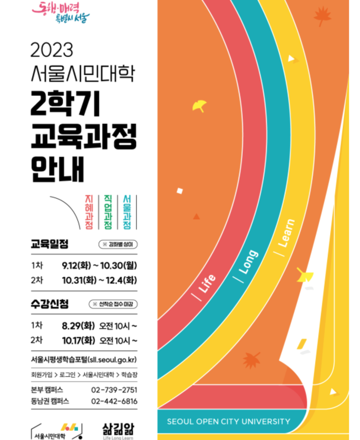 [세계로컬타임즈 이효진 기자] 서울시민에게 폭넓고 깊이 있는 학습 기회를 제공하는 서울시민대학이 2023년의 2학기 수강생을 모집한다.