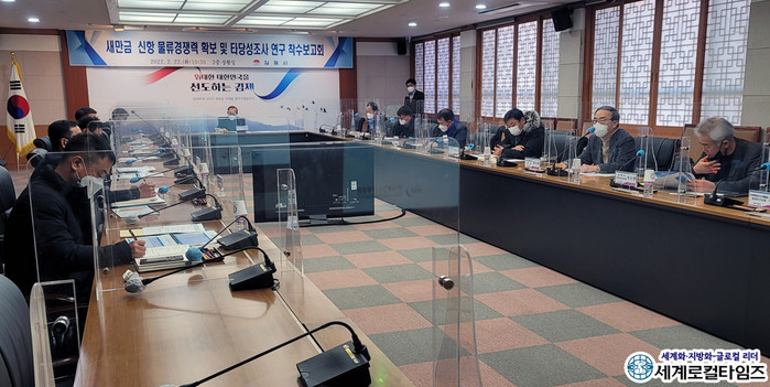 22일 오전 김제시는 물류관련 전문가, 기초의원 등이 참석한 가운데 ‘새만금 신항 물류경쟁력 확보 연구 및 타당성조사’ 연구용역을 착수 보고회를 가졌다.