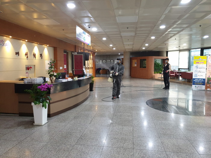사태의 심각성에 따라 고객이용 장소 및 접촉이 빈번한 손잡이 등에 신종 코로나 방역 소독제를 분무 소독 실시하는 등 소독업체와 철저한 소독에 나서고 있다.