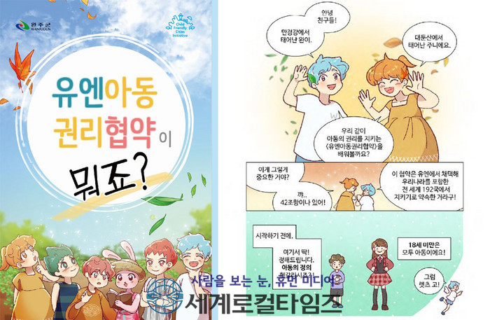 [세계로컬타임즈 조주연 기자] 전북 완주군이 아동이 마땅히 누려야 할 권리인 유엔아동권리협약 내용을 담은 웹툰북을 제작, 배포한다.