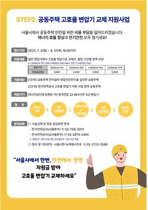 고효율 변압기 교체 사업은 한국전력공사 에너지효율화사업과 연계해 서울시와 한국전력공사로부터 중복으로 지원금을 받을 수 있으며, 변압기 용량별로 정액 지원한다.