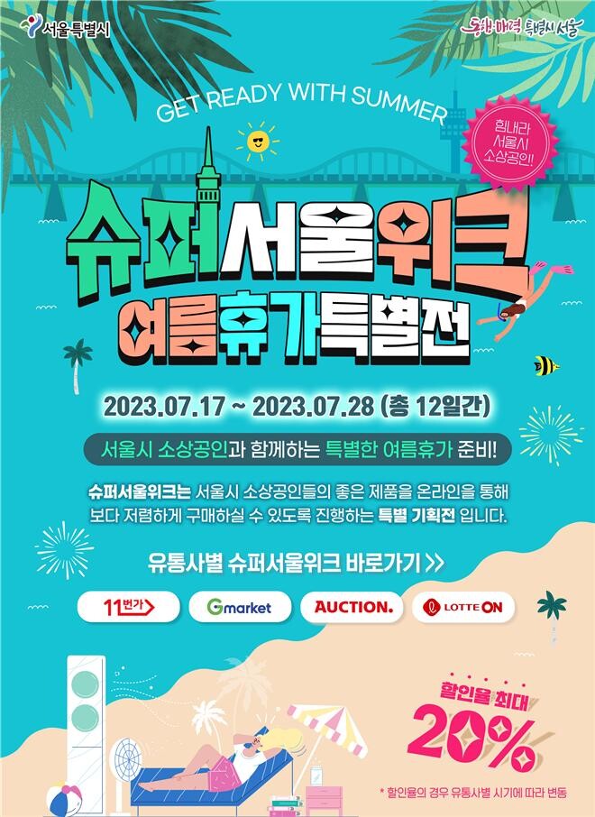 2020년부터 개최하고 있는 슈퍼서울위크는 서울시가 서울시 소상공인을 대상으로 국내 대표 온라인쇼핑몰 입점 및 쇼핑몰 내 할인 쿠폰 발행을 지원하는 온라인 기획전이다.