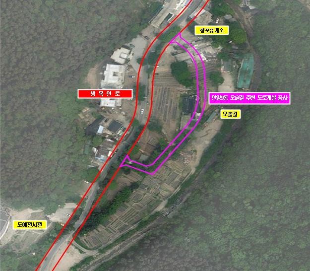 | ▲ 병목안 도로개설 위치도. (사진=안양시 제공) |