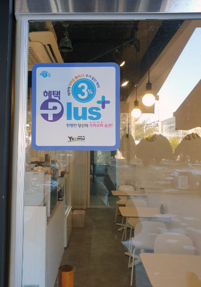 혜택플러스는 지역 내 점포주가 자발적으로 연수E음 사용자에게 3~7%를 현장할인해주면 연수구가 2%의 사용자 추가 캐시백과 함께 가맹점 카드수수료와 홍보키트, 플랫폼, 마케팅 등을 무료 지원하는 제도다.