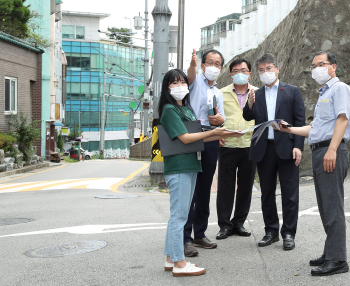 | ▲ 홍인성 중구청장(오른쪽 두번째)이 사업현장을 방문해 점검을 하고 있다. (사진=중구 제공) |