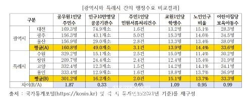 | ▲ 광역시와 특례시 간의 행정수요 비교결과 (그림=용인시정연구원) |