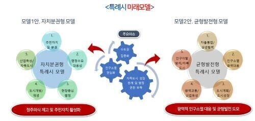 첫째, 수도권과 비수도권의 특성을 고려하여 자치분권형 모델과 균형발전형 모델로 행정모델을 다양화할 필요가 있다.