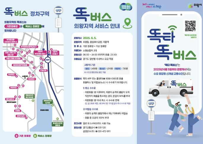 김성제 의왕시장은 “의왕시 일부지역은 대중교통 수요가 적어 정규노선을 도입하기에는 다소 어려움이 있었다”며 “의왕 똑버스와 경기프리미엄 버스 등의 수요대응형 대중교통 시스템 도입으로 시민이 편리한 맞춤형 교통 환경을 제공하겠다”고 밝혔다.