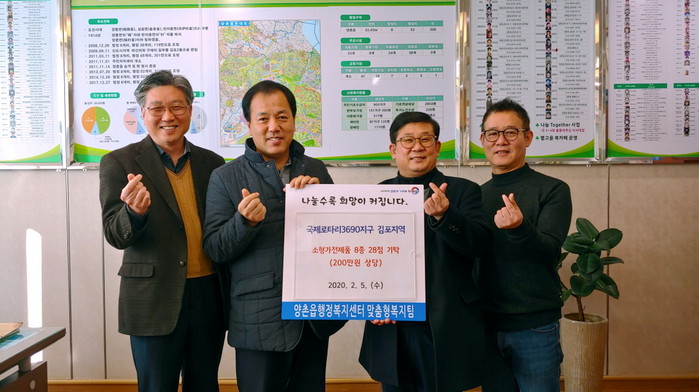 [세계로컬타임즈 최성우 기자] 국제로타리3690지구 김포지역은 양촌읍행정복지센터를 방문해 사례관리 진행 중인 위기가구에 필요한 가전제품 8종 28점을 기탁했다.