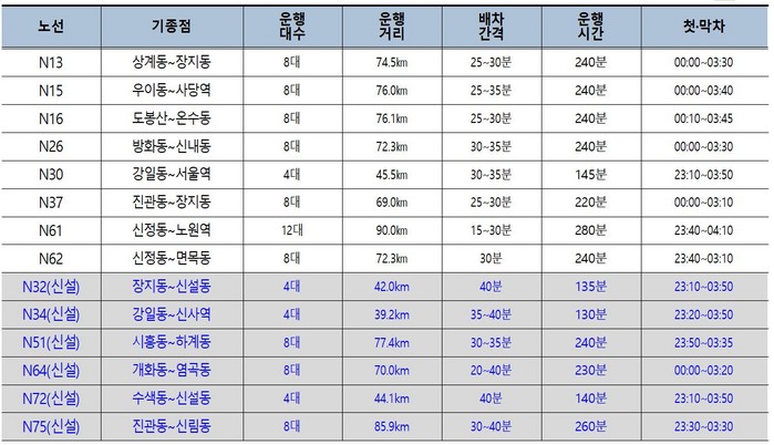 이에 따라 지금까지 9개 노선, 72대로 운행하고 있던 올빼미버스는 14개 노선, 100대로 운행 규모가 대폭 늘어난다.