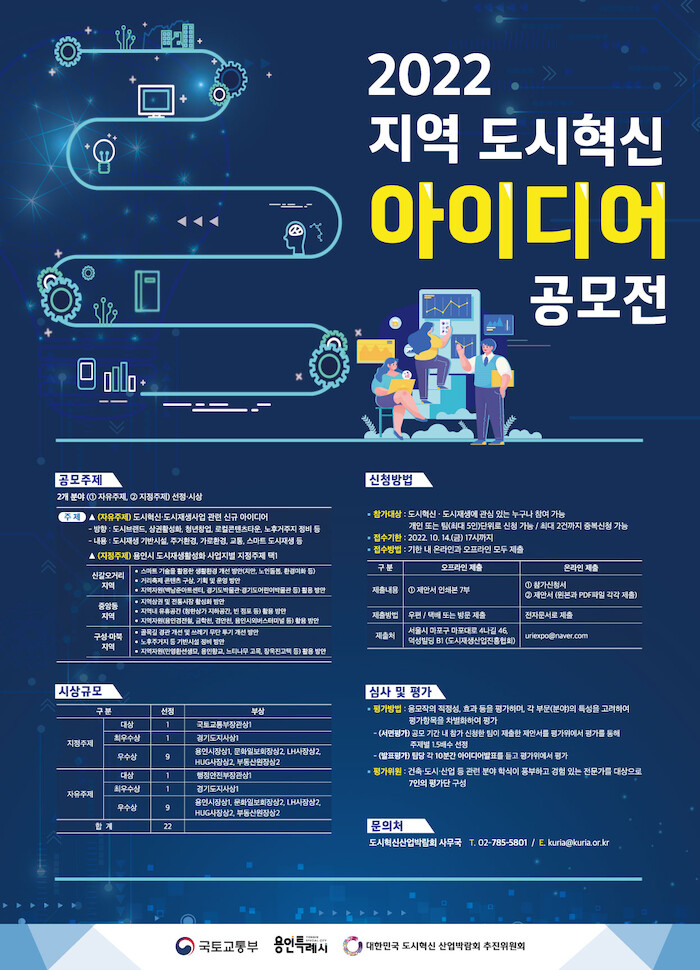 [세계로컬타임즈 이지안 기자] 용인특례시는 다음 달 개최되는 ‘2022 대한민국 도시혁신 산업박람회’ 개최를 앞두고 ‘지역 도시혁신 아이디어 공모전’을 개최한다고 27일 밝혔다.