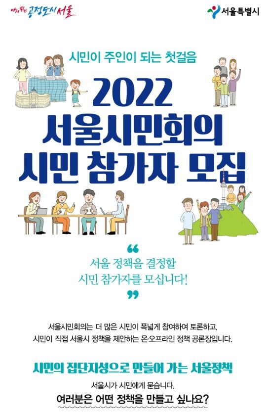 [세계로컬타임즈 이효진 기자] 서울특별시는 ‘2022 서울시민회의’에 참여할 시민 참가자를 21일부터 8월 12일 공개모집한다.