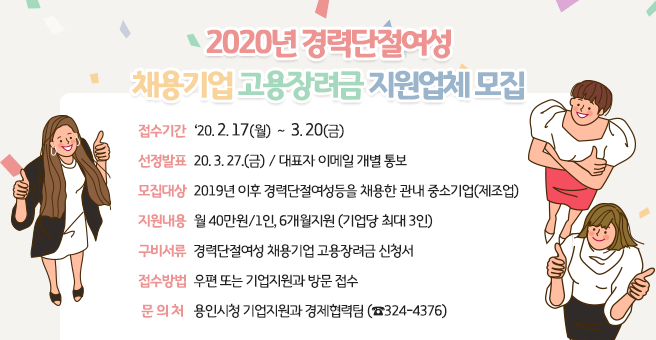 | ▲ 경력단절여성 채용기업에 고용장려금 지원 관련 안내 이미지 (사진=용인시 제공) |