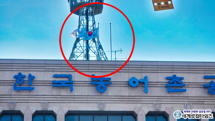 [세계로컬타임즈 글·사진 조주연 기자] 한국농어촌공사의 규정을 무시하는 국기 게양이 또 포착됐다.