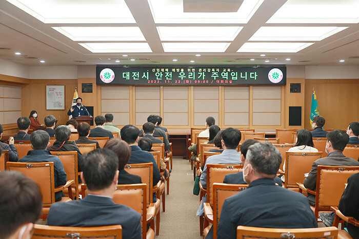 한선희 시 시민안전실장은 “오늘 교육에 참석하신 분들이 안전한 대전을 만들어 가는 주역”이라며 “안전한 일터 조성이 최우선 과제라는 신념을 가지고 사업장의 안전을 저해하는 위험요인을 분석해 안전대책을 적극적으로 강구해달라”고 당부했다.