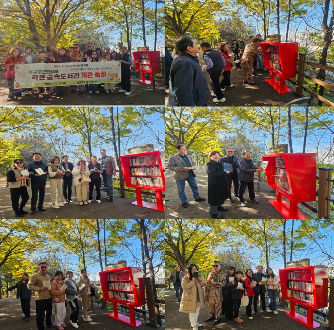 설치 현장에는 주민자치회 위원과 지역 주민들이 함께 참석해 숲속도서관 조성을 축하했으며, 자연 속 따뜻한 가을 햇살 아래에서 기념 촬영을 진행하며 지역 공동체의 소통과 나눔의 가치를 되새기는 시간을 가졌다.