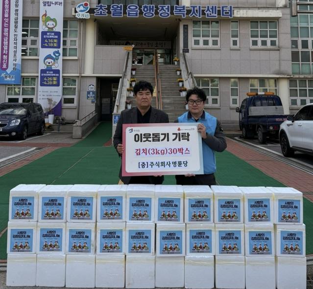 이번 김장 김치는 ㈜명륜당 임직원이 직접 손수 담근 것으로 초월읍 지역 내 저소득 홀몸 어르신 가구에 전달돼 겨울철 식생활 지원에 도움을 줄 예정이다.