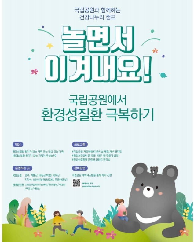 참여신청은 8일부터 국립공원 예약시스템에서 가능하며, 신청 시 환경성질환 증빙자료를 함께 제출해야 한다.