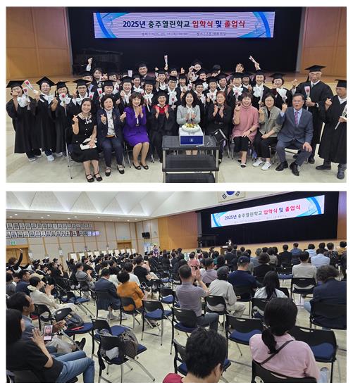 정진숙 충주열린학교 교장은 “우리는 서로 경쟁하지 않고 함께 공부했고, 함께 격려했기에, 포기하지 않고 끝까지 해낼 수 있었습니다. 오늘의 졸업은 끝이 아니라 더 큰 꿈을 향한 새로운 시작입니다. 퇴근 후 피곤한 몸을 이끌고 교실에 들어오던 모습, 시험을 앞두고 서로 응원하던 모습, 웃으며 간식을 나누고 서로를 격려하던 그 모든 순간이 소중한 기억으로 남아 있습니다. 여러분 모두 정말 수고 많으셨습니다. 그리고 이제, 여러분의 다음 꿈도 응원하겠습니다.”라고 축사를 전했다.